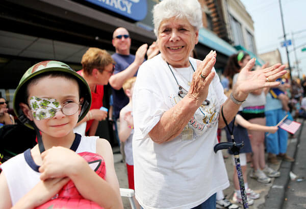 Along the parade route, Mary Pollonino stood with families waving flags and cheered the veterans, both young and old.