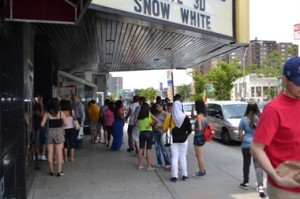 Lines formed outside the Midway movie theater in Forest Hills — where Spider-Man hails from — to be among the first to see the superhero flick.