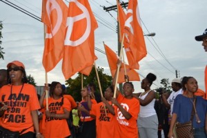 As the march moved from Sutphin Boulevard and 111th Avenue to the Baisley Houses, residents came out, with some joining the march and the chants to reclaim the streets for peace.