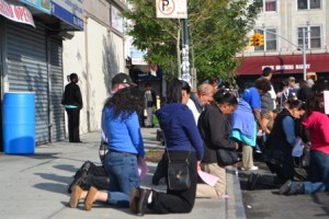 About 75 people came out in support of the church, praying and singing hymns behind a barricade monitored by NYPD along 147th Place. Fresh Meadows resident Jeslyn, who declined to give her last name, was one of the church members who attended the vigil.