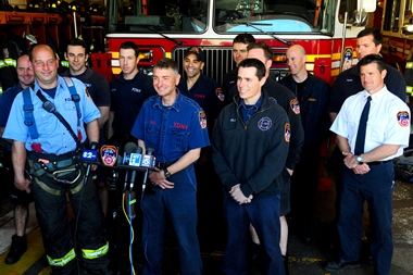 Con Ed heroes: Four Con Edison employees — John Kane, John McDonnell, Michael Santeramo and Anthony Farmighetti — rushed to the aid of the victim of a violent purse snatching in Bayside before chasing after the suspect.