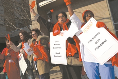 Flushing nurses protest: About 200 registered nurses at Flushing Hospital rallied outside the facility after their contracts expired in December. The nurses protested for better healthcare, pay and pension benefits.