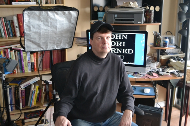 Dan Brown, pictured here in his home office, is directing and producing an upcoming documentary about the Rockaways post-Sandy. (THE COURIER/Photo by Maggie Hayes)