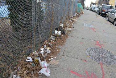 Leggett said any mess near her home is created by the taxi drivers and the Sunnyside Railroad Yard across the street from her house. While the taxi drivers sweep up their used coffee cups and bits of paper that spill over into Leggett’s property, swaths of litter accumulate around the MTA-owned plot. There are also three bus stops, a state office building and a subway stop in the immediate vicinity of her home, generating garbage.