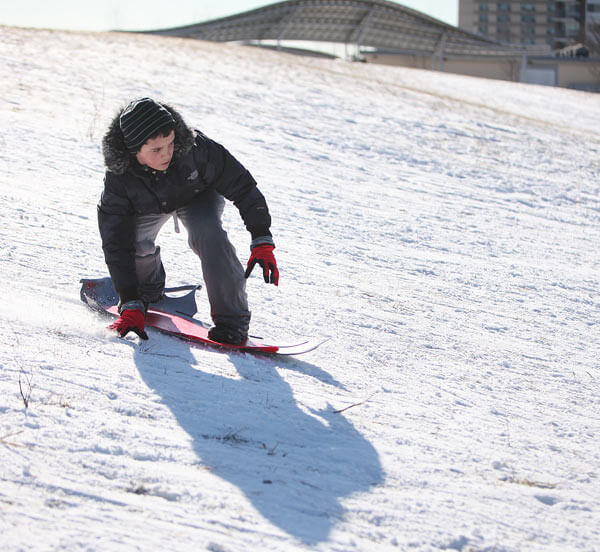Chuck Fogarty, 5, and his sister Gabriella, 4, were sitting in a sled that was hauled by a friend up and down the middle of a snowy Hamilton Beach street — though shovels and snowblowers were slowly reclaiming the asphalt.