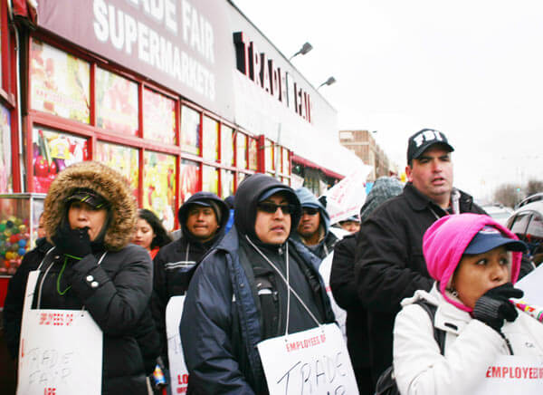 The meat department employees of Trade Fair, a supermarket chain with 11 locations across the borough, have been in contract negotiations with their employer. The workers, represented by Local 342, want fair wages and to keep their health benefits and Sunday premium hours, meaning if they work on a Sunday, and regardless of whether they work overtime, they are entitled to an additional 25 percent of their regular pay.