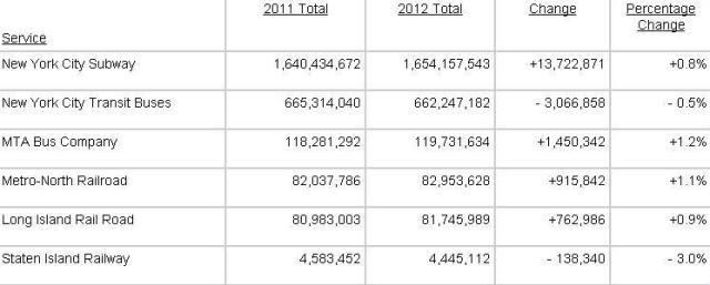 More than two billion rides were provided throughout 2012, an increase of a little more than half a percent.