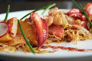 Must-tries include the oxtail terrine, which looks more like a sinful chocolate brownie, falling apart at the touch and melting on the palate, served with a caramelized onion puree and roasted mushrooms. Who knew pigs’ feet could evoke such a gleeful response? Here, the pork trotters are tenderly prepared in a torchon, then breaded like a gargantuan crab-cake, and topped with a slow-cooked egg that acts as a rich gravy. The sweet & sour duck breast with buttered lychee is gorgeous in every way. A salad of succulent lobster claw and tail meat over frisee and citrus segments is jazzed up with an ancho vinaigrette.