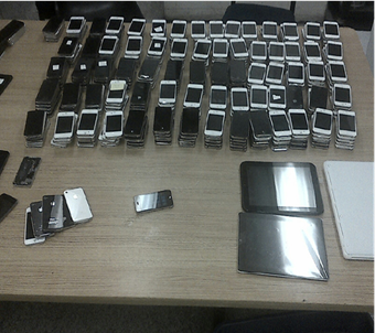 Officers, after conducting a search warrant, turned up 443 Apple iPhones, 20 Apple iPads, 11 Apple iPod touches, a black imitation pistol, a small amount of marijuana and $9,180 in cash inside the 77-15 168th Street home on Wednesday, said the NYPD.