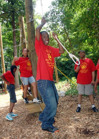 The venue boasts a zip line, a climbing wall, a trust fall station, swings and balance platforms. It also has ropes courses that promote team building and problem solving skills through physically and intellectually demanding situations.