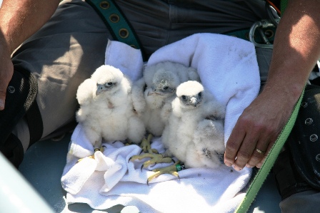 Peregrine falcons were nearly wiped out in the 1960s due to pesticides that poisoned their food supply, and have remained on the State DEC’s endangered birds list since that time.