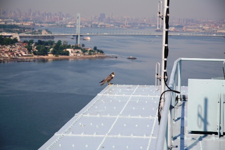 The nesting boxes for the peregrines were 215 feet high on the Marine Parkway’s Rockaway tower and 360 feet on the Throgs Neck’s Bronx tower. The MTA has been participating in the State DEC’s nesting program since it started in 1983, making this its 30th year.