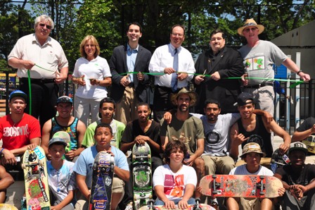 The newly redone London Plane Tree Park, on the border of Woodhaven and Ozone Park, opened on Sunday with a ribbon cutting by officials and skateboarders.