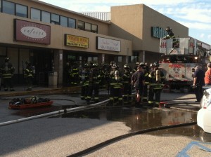 Workers in the 10th Avenue shopping center said a man they believed to be either the restaurant’s owner or manager “came running out on fire.”