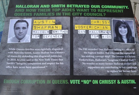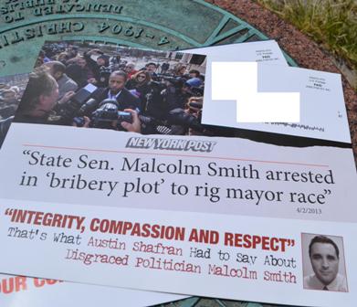 Shafran, the Senate Democrats spokesperson in 2010, is blasted for “staunchly defending” State Senator Malcolm Smith, who allegedly conspired with Halloran and GOP leaders to run for mayor on the Republican line.