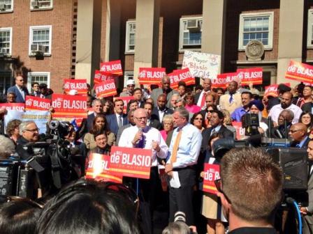 De Blasio said he was “honored to receive the endorsement of the Queens County Democrats, a group of city leaders that has consistently represented and upheld the rights of working and middle-class families across the borough.”