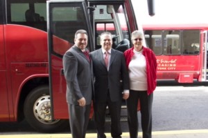 Casino president Edward Farrell, Community Board 10 chair Betty Bratton and State Senator Joseph Addabbo greeted the Red Express buses as they pulled into Resorts World, coming in from their first trip down from Manhattan’s Lincoln Center.