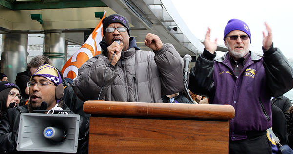 “We have a system that seems to be designed to maintain services while keeping workers in poverty,” said 32BJ President Hector Figueroa, a Jackson Heights resident, “These used to be good-paying jobs, but we see the same problems all across the contracting system, whether it be in health care or property services.”
