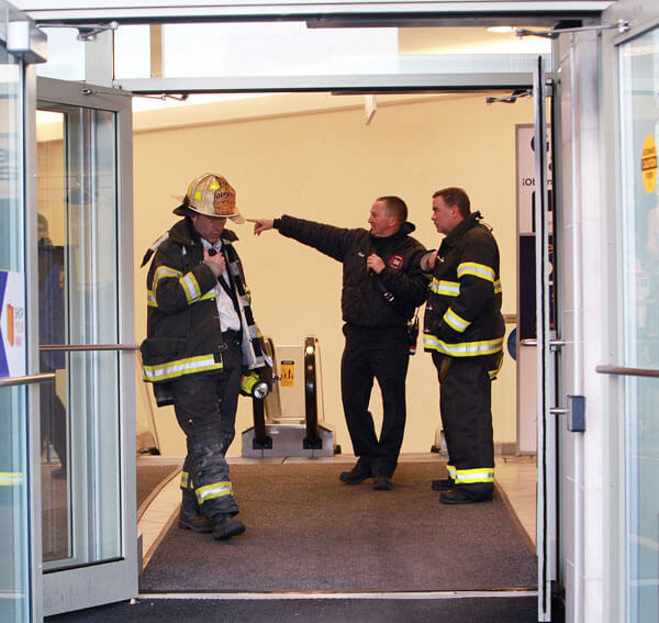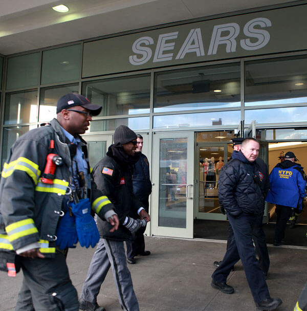 He said, however, that the flames in the lower level of Sears activated the sprinkler system and required the use of a fire extinguisher.