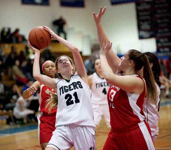 St. John’s Prep did attempt to rally in the third quarter. It pulled within 31-19 on two Nicole Schweit free throws with 3:07 left in the frame. Hiltunen answered with a trey in front of the Kearney bench and a Kailey O’Grady three-point play made it 37-21 with 1:54 remaining in the quarter.
