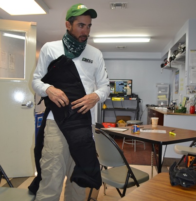 According to MSF, proper gear also includes a long-sleeved shirt or jacket, full-fingered gloves, long pants and over-the-ankle boots (rubber soles, no laces). Wood also showed us motorcycle-specific over-pants with armor built into the shins, hip and knees.