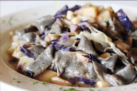 His father ran a flour mill, so Giuseppe Viterale knows how to make a killer homemade pasta with unique flours, like this buckwheat tagliatelle topped with tender spuds and braised cabbage, all brought together with rich fontina cheese.