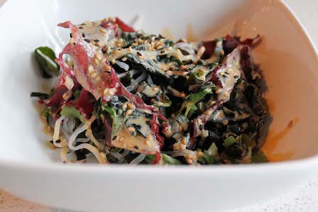 Many Japanese restaurants boast a seaweed salad, but most renditions are swimming in sugar. At this new Oyster parlor, the ocean greens are also blue and red, tossed in a light sesame dressing that allows the ocean and earth to sing together.