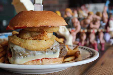 Who knows how the chef gets things so right at this Astoria hotspot every single time. This meatloaf tastes just like the name, and comes with a smear of sundried tomato ketchup, a blanket of melted cheddar, and a crispy crown of battered onion rings.