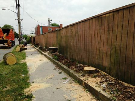 Trees on both the 48th Avenue side of the property and the 210th Street side were cut. However, only the saplings on 210th Street were privately owned, while the sprawling 50- to 60-foot-tall city trees on 48th Avenue belong to the city.