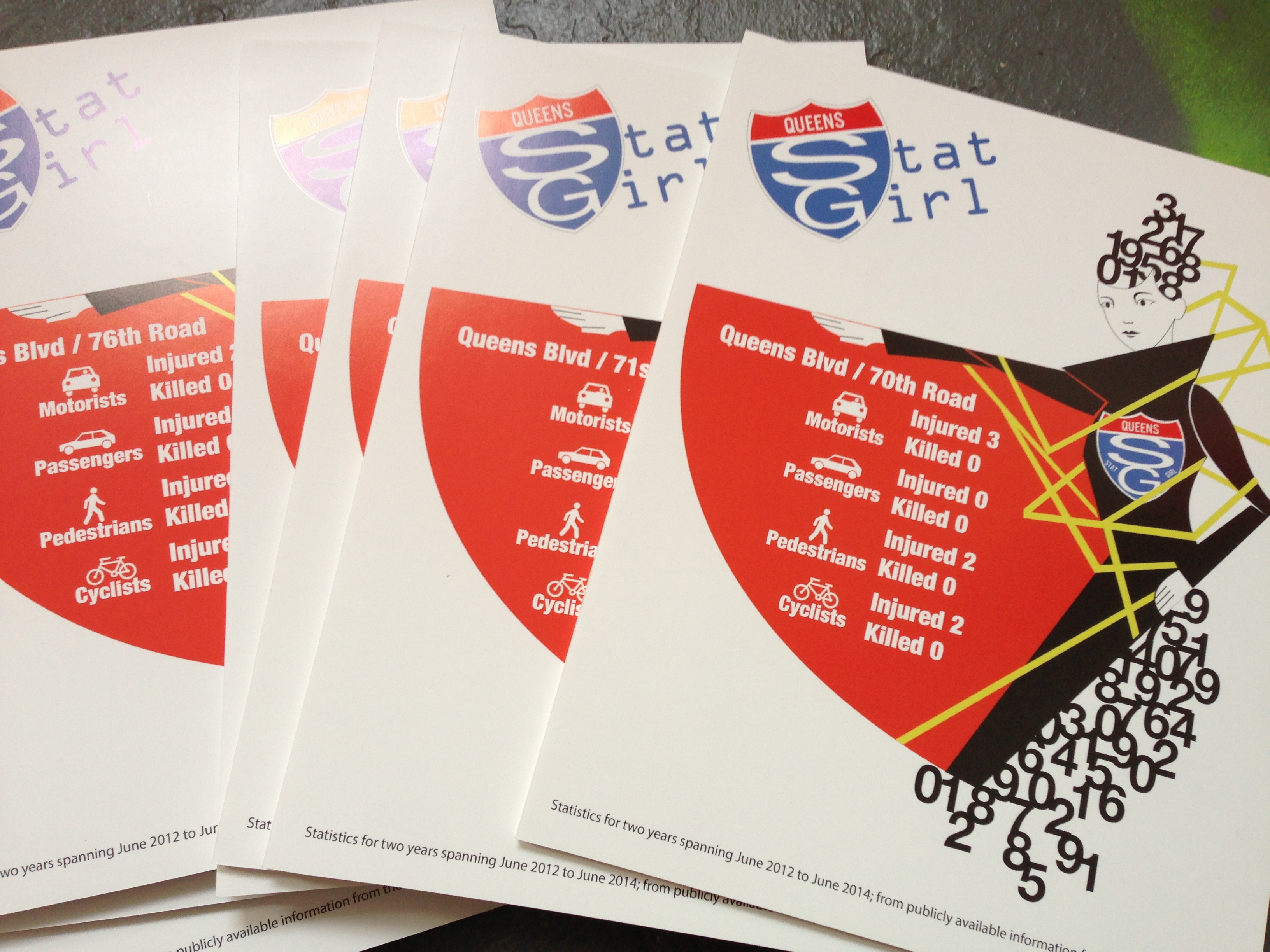 For example, posters for one project called “Stat Girl” depict a super hero displaying statistics on traffic accidents that have occurred on Queens Boulevard in the past two years. The posters will be put up all day down the thoroughfare.