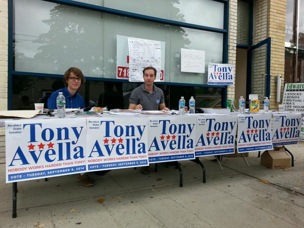 10:22 a.m. State Sen. Tony Avella’s crew passes around fliers in Bayside just off of Bell Boulevard.