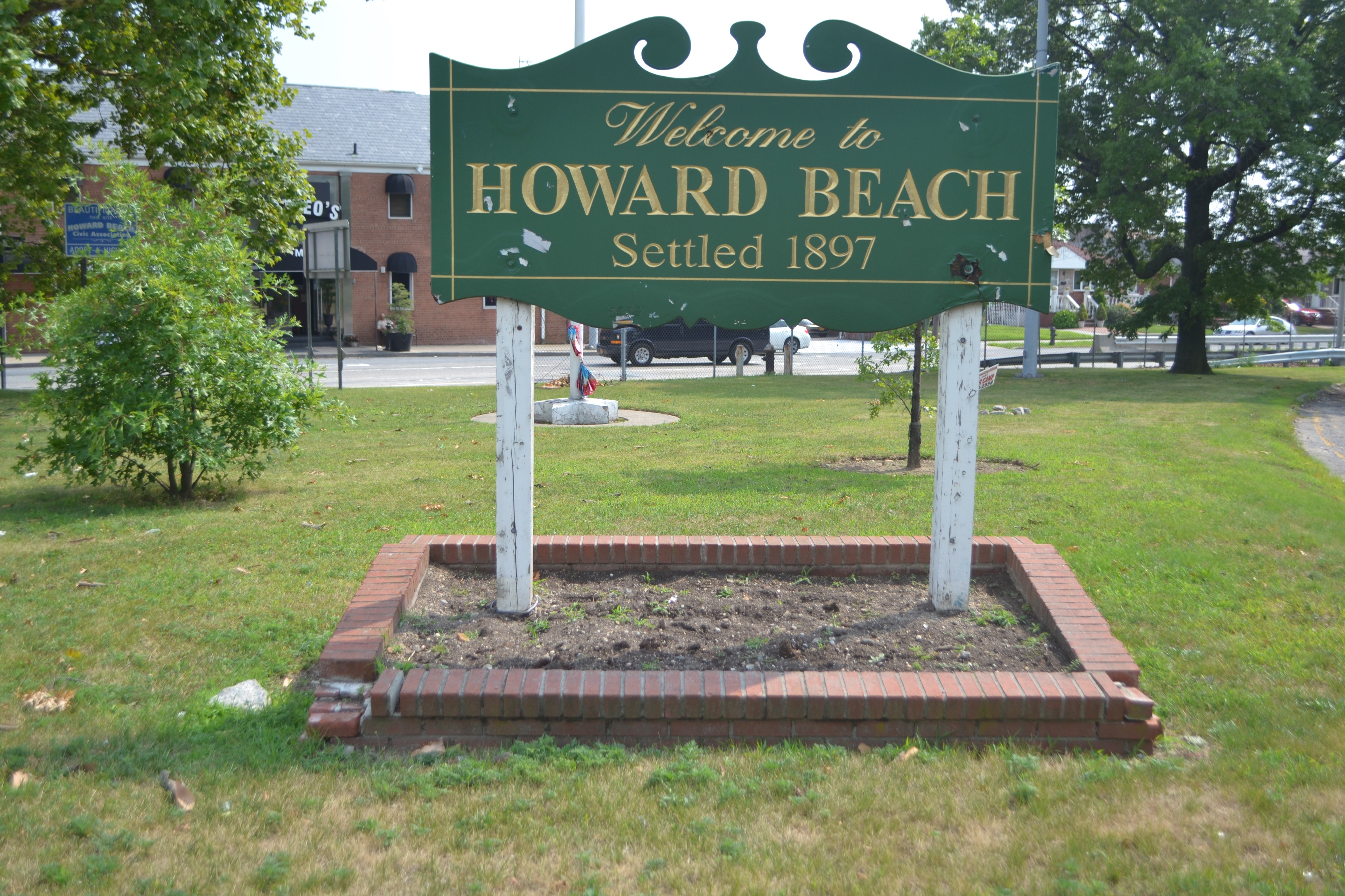The old and beaten up Howard Beach welcome sign, located in the welcome triangle on Cross Bay Boulevard and 155th Avenue, will soon be replaced by a brand-new one, thanks to a donation by the Howard Beach Memorial Services.