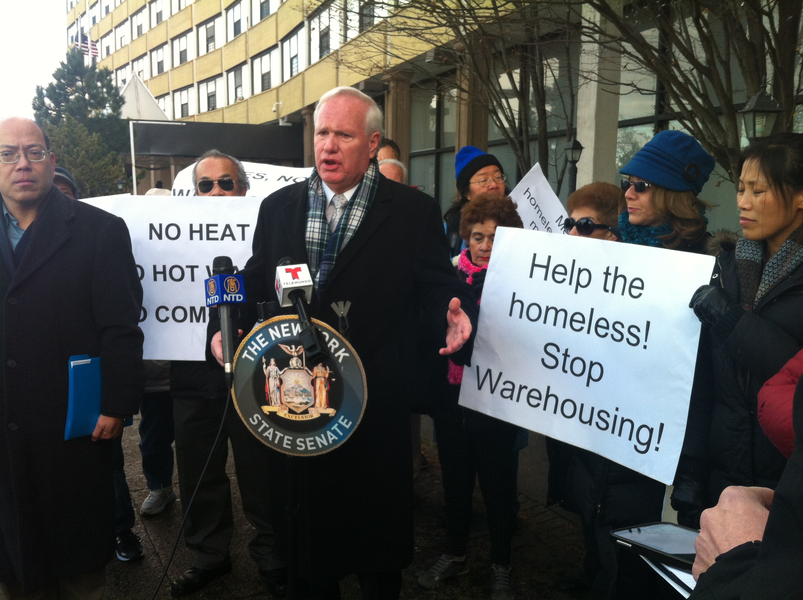 Avella, who is chairman of the Senate’s Social Services Committee, joined residents and local leaders to speak out against the proposal to convert the shelter at 7900 Queens Blvd. in Elmhurst to a permanent facility under a $42 million contract with the city.