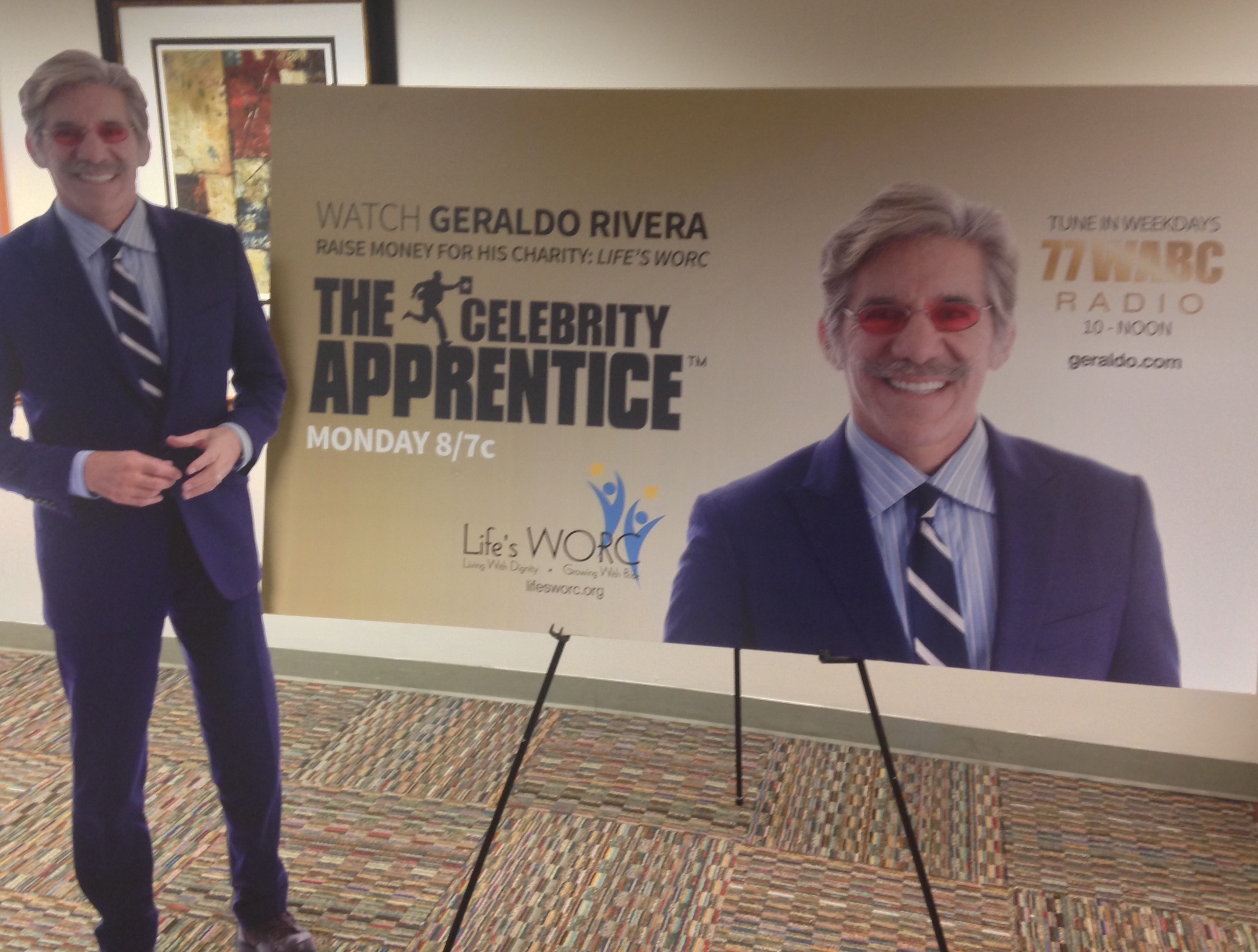 Geraldo Rivera has made it through five episodes of “The Celebrity Apprentice,” where he has raised more than $700,000 for Life’s WORC. And the nonprofit is thanking him on an enormous billboard hanging above Times Square.