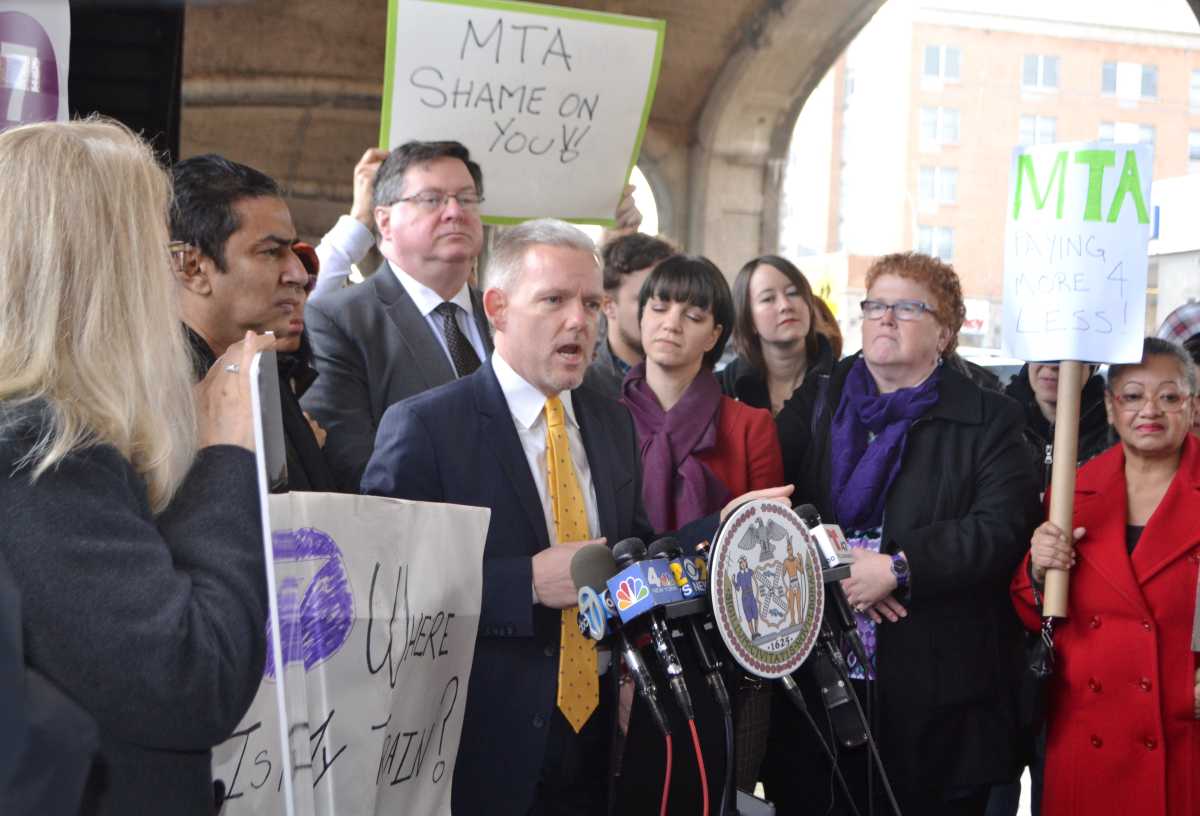 Local elected officials, community leaders and residents gathered Wednesday morning underneath the elevated 7 train at the 40th Street station in Sunnyside to rally against the MTA and the deteriorating service of the subway line.