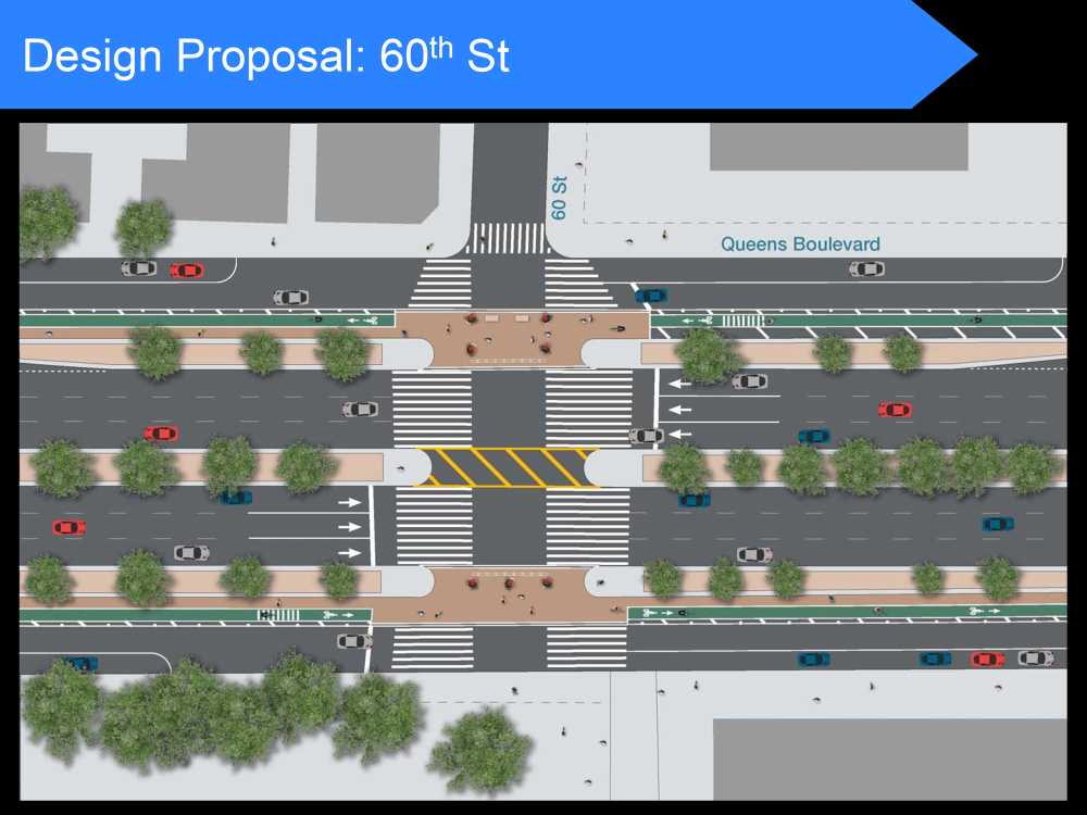 This project, which will be reviewed by Community Board 2 and is expected to be implemented in August, launches the start of the DOT’s $100 million Green Streets initiative, which will cover all seven miles of Queens Boulevard.