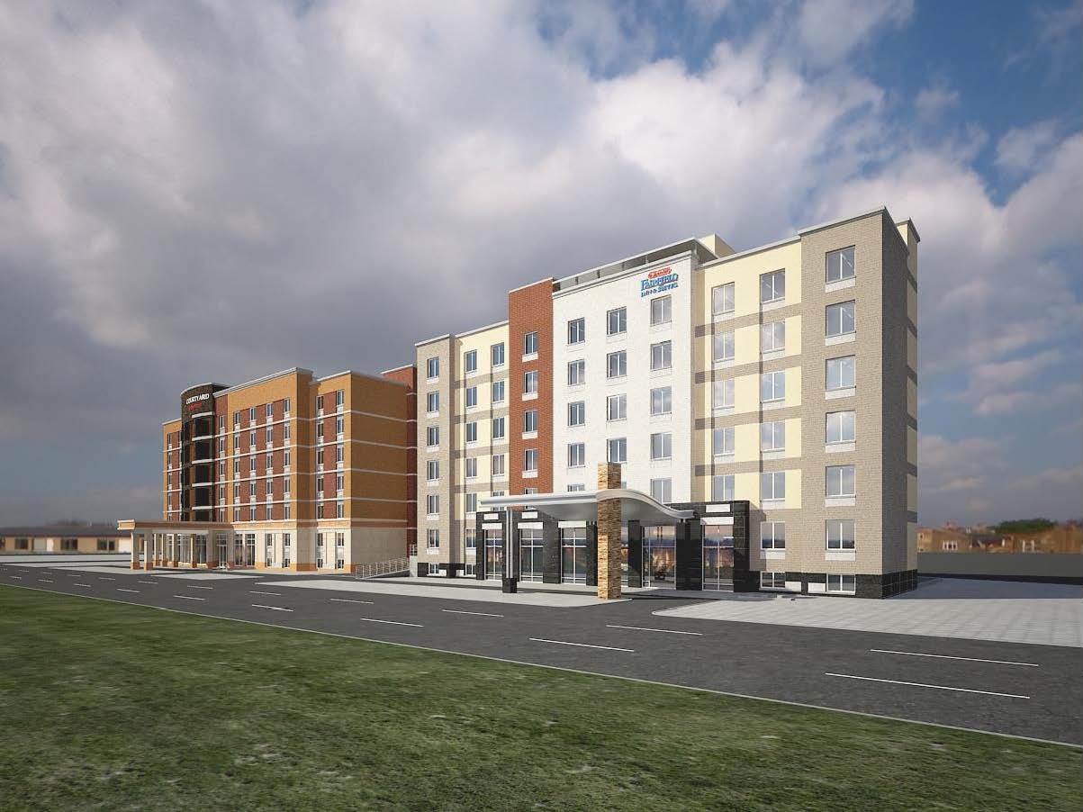 Two six-story hotels under the Marriott brand are being built in the neighborhood, marking another big hotel chain coming to the mostly residential area.