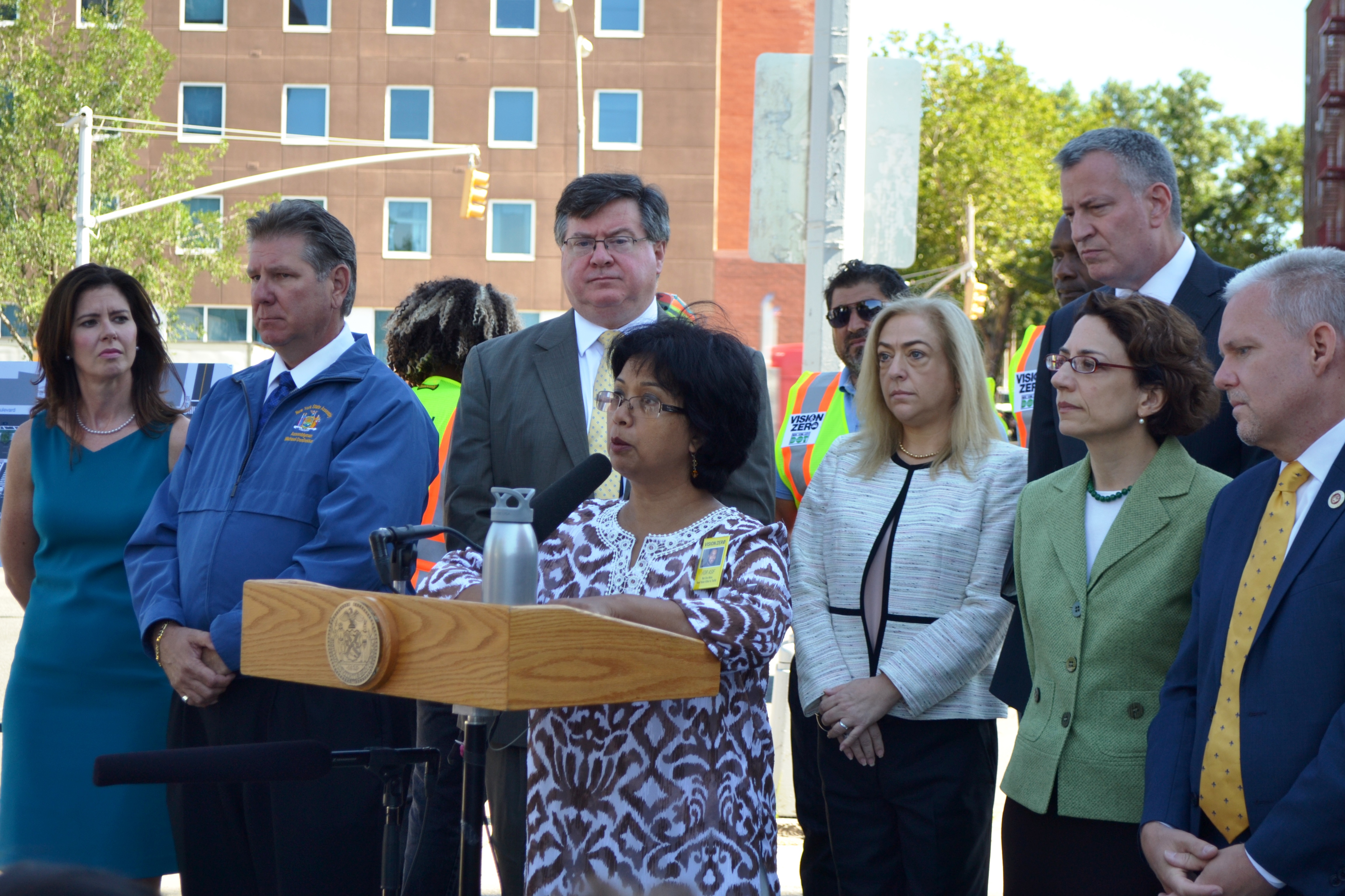 Rahman — whose 22-year-old son Asif was fatally struck while riding his bicycle home in 2008 — joined Mayor Bill de Blasio, Department of Transportation (DOT) representatives and local elected officials and community leaders on Thursday morning in Woodside to announce the beginning of the $100 million redesign of the busy thoroughfare which has claimed 185 lives since 1990.