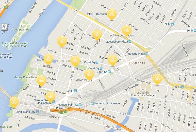 Long Island City will get a total of 12 stations, including one by the Vernon Blvd-Jackson Av subway station, another in front of MoMa PS1, one next to the LIC Flea & Food and another right by Queensboro Plaza.