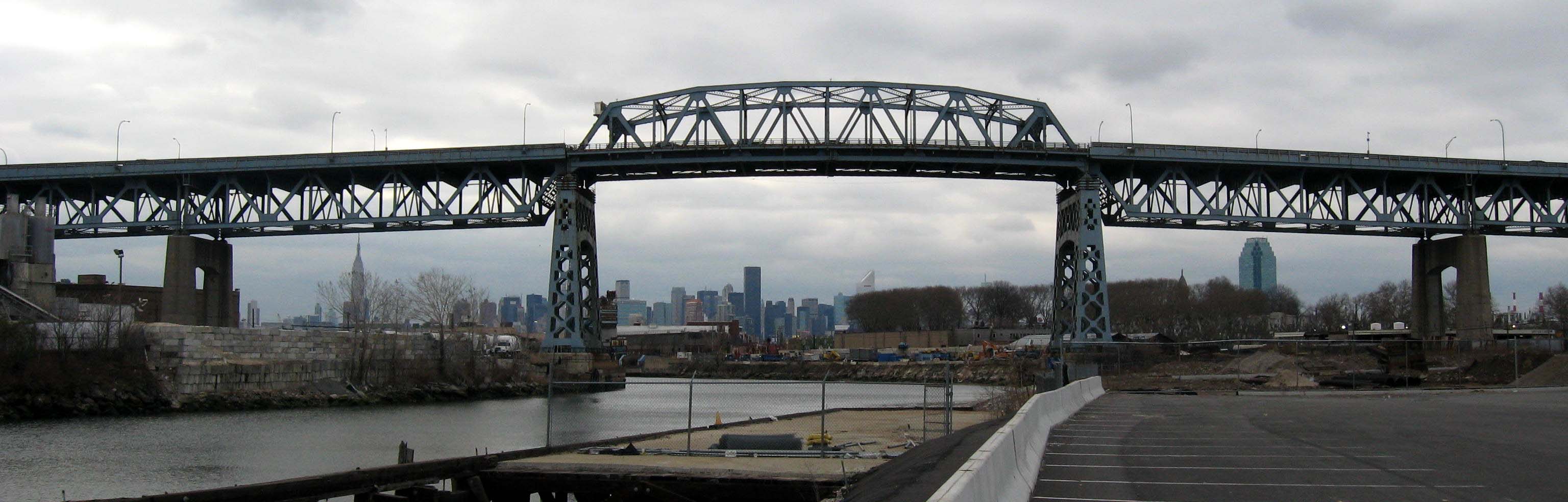 The eastern end of the existing Kosciuszko Bridge — which carries the Brooklyn-Queens Expressway (BQE) over Newtown Creek — passes over this portion of 54th Avenue.