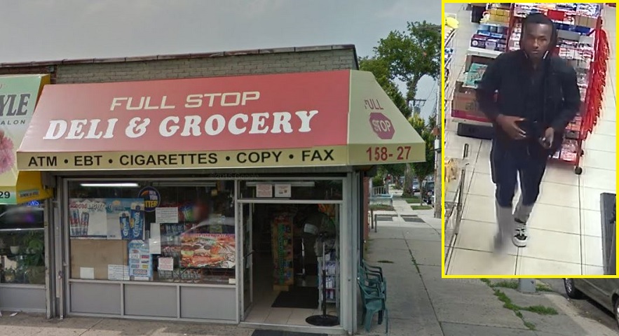 Ten minutes later, police said, the crook came calling to the Full Stop Deli and Grocery located down the block at 158-27 Horace Harding Expwy. Sources said the gunman displayed a firearm at an employee, but left the scene moments later empty-handed.