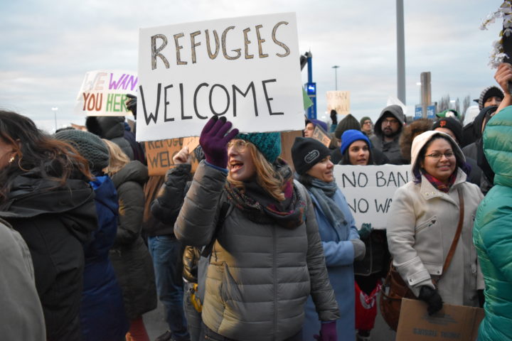Make the Road New York, which is located in Jackson Heights, began protesting outside the International Arrivals terminal to protest Trump’s executive order that prohibits residents of Iraq and a select number of other Middle Eastern nations from entering the United States for at least 90 days. The crowd grew throughout the day, chanting loudly and holding up signs demanding that foreign refugees be permitted entry into the U.S.