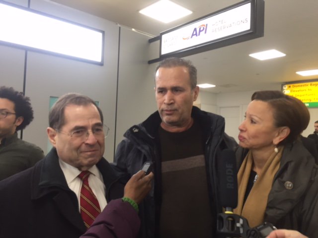 Congresswoman Nydia Velazquez and Congressman Jerrold Nadler visited Terminal 4 earlier on Saturday and met with members of U.S. Customs and Border Patrol. Shortly thereafter, Darweesh was released from CBP custody; Alshawi and 10 other refugees are still being detained at JFK, according to a tweet that Nadler posted.