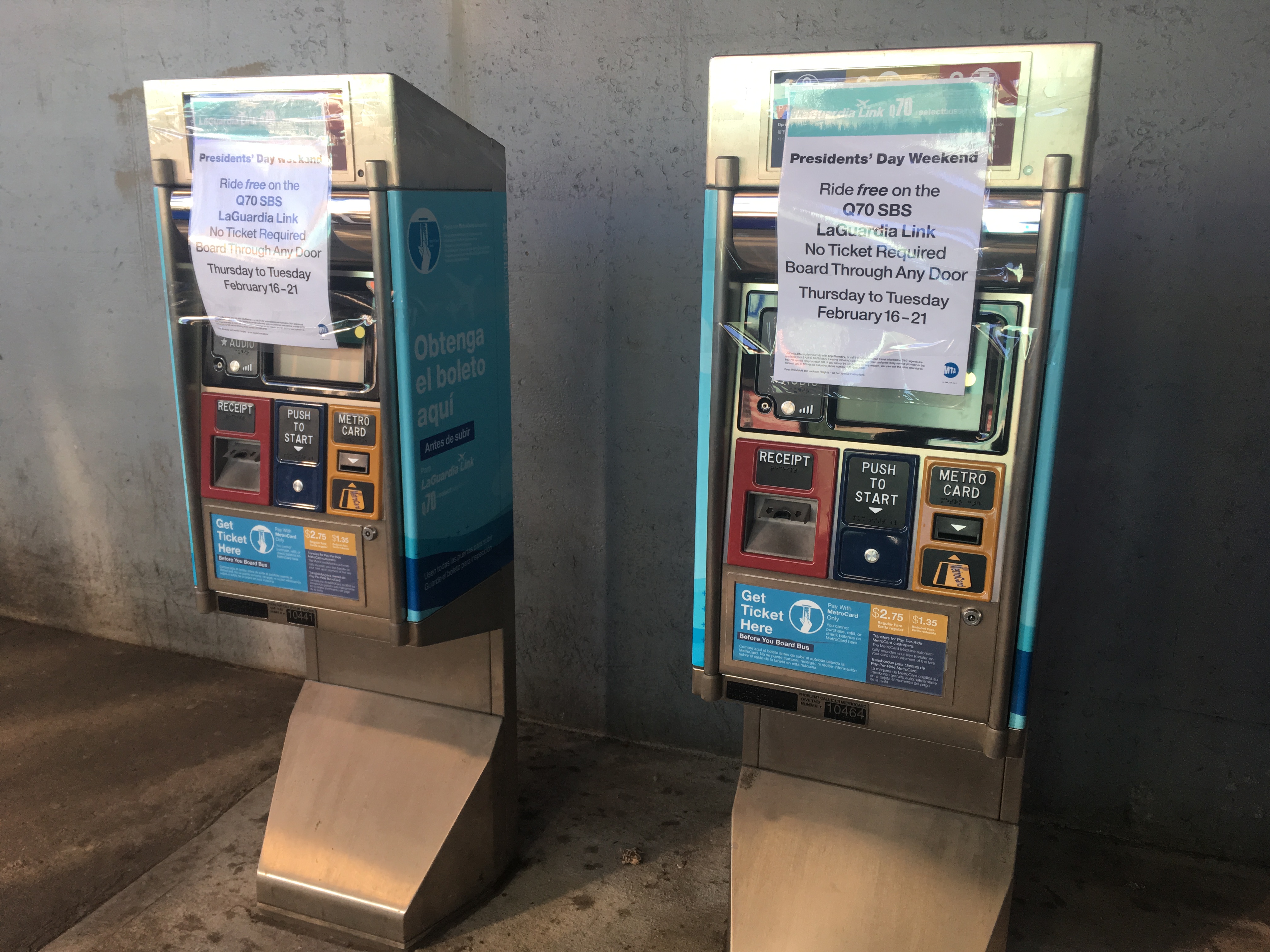 Beginning today, Thursday, Feb. 16, and continuing through Tuesday night, Feb. 21, the LaGuardia Link (Q70) limited bus line between Woodside and the airport will operate for free. During this same period, those who must drive to the airport can park their vehicles in the airport’s Long-Term Lot (P10) for $18 a day, less than a third of the cost to park in daily and hourly lots located next to the airport terminals.