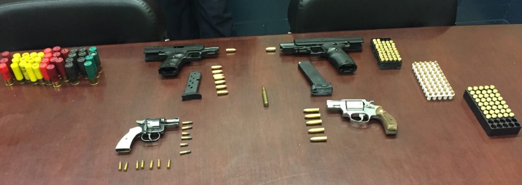 Cops were able to recover from Baker’s waistband a loaded Smith and Wesson .38-caliber revolver; they also found a loaded .22-caliber revolver in Rutledge’s purse. Police also recovered the gun Lewis allegedly dropped, a 9mm Hi-Point handgun.