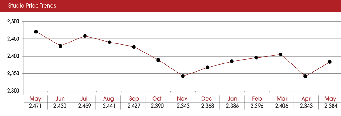 According to the report, the average price for a studio in these neighborhoods is $1,838, the lowest its been since rents were recorded last May. In October 2016, the average price for a studio was $2,070.