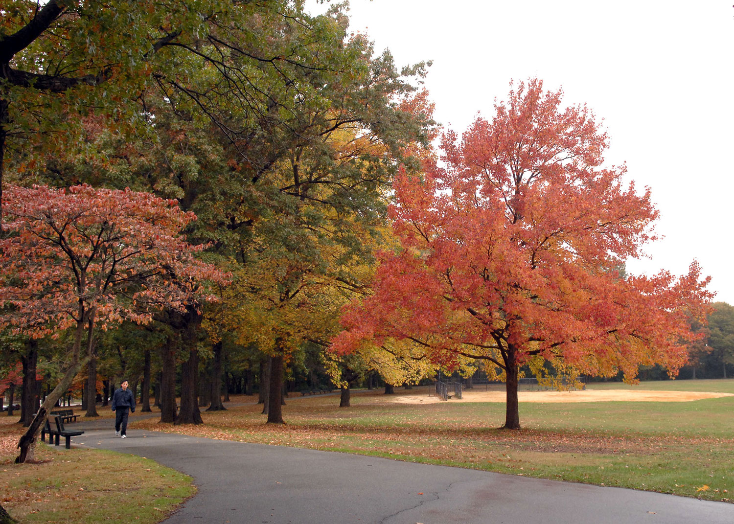 Cunningham Park, which lies between the Grand Central Parkway to the south and the Long Island Expressway, features a variety of oaks, hickories, tulips and honey locusts. NYC Parks suggests taking the park’s southeast hiking trail at Francis Lewis Boulevard and Union Turnpike for the most picturesque views.