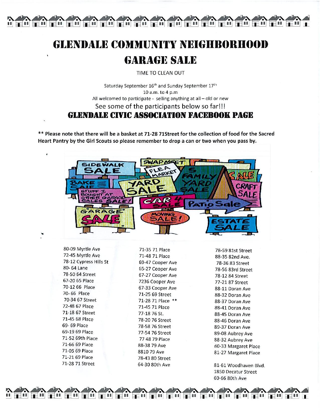 The Girl Scouts, who were instrumental in hanging fliers across Glendale advertising the yard sale, will also be leaving a basket outside of 71-28 71st St. and a location on 87th Street for food donations that will go to the Sacred Heart Pantry.