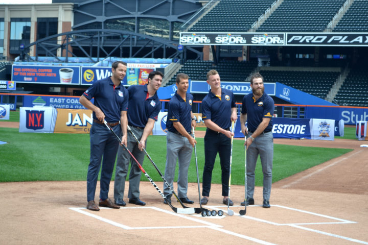 New York Rangers and Buffalo Sabres players met at Citi Field, home of the New York Mets, on Sept. 8 to celebrate the upcoming National Hockey League (NHL) Winter Classic taking place at the baseball stadium. The outdoor game is slated for Jan. 1.