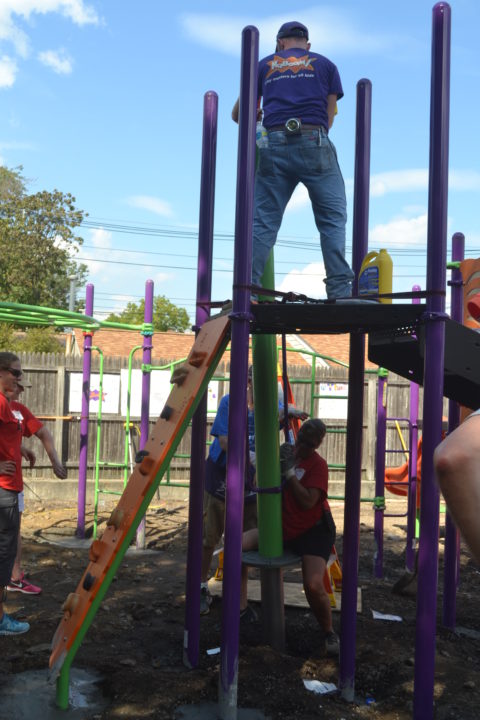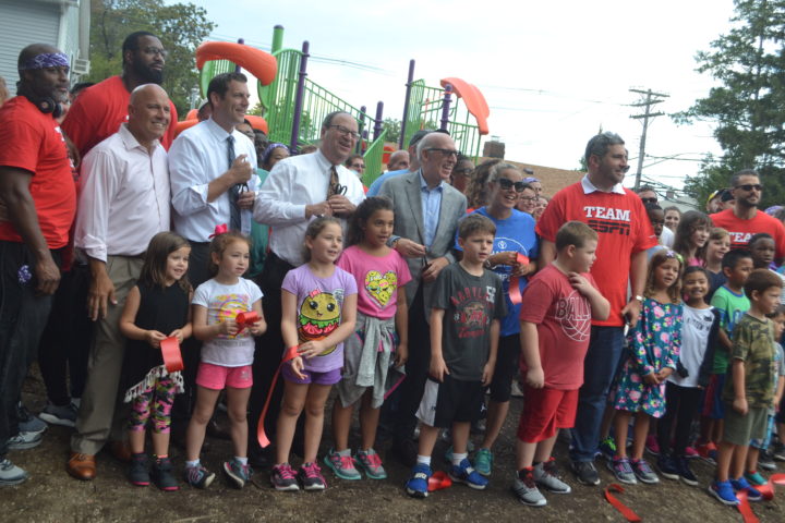After the six-hour build process, volunteers, sponsors, elected officials and Samuel Field Y kids assembled in front of the playground to celebrate with a ribbon cutting.